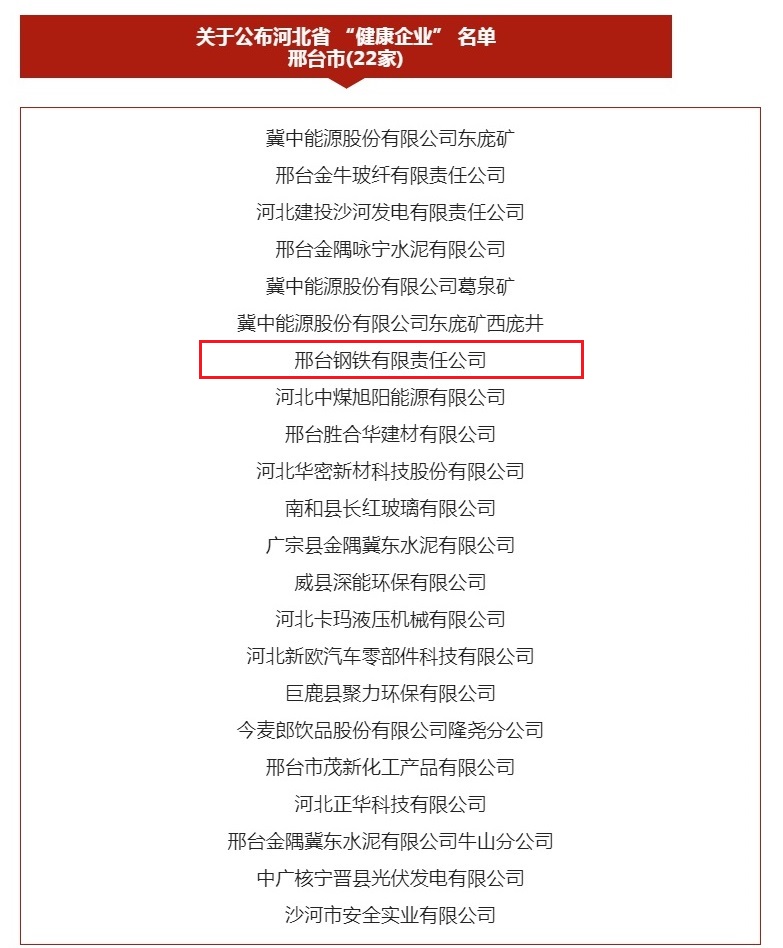 - Recently, six departmants including Health Commission of Hebei Province and Industry and Information Technology Department of Hebei Province jointly announced the first “healthy enterprises”. There are 181 healthy enterprises in the province, covering various fields such as energy, steel and mac…