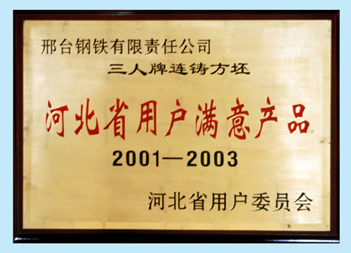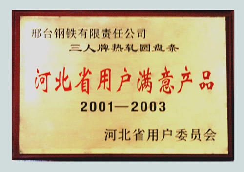 The Customer Satisfied Product of Hebei of hot rolled wire of Three Person Brand from 2001 to 2003.