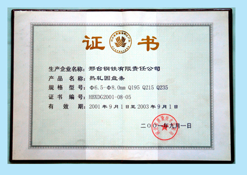 The hot rolled wire was awarded the Quality Reliable Products of Hebei.