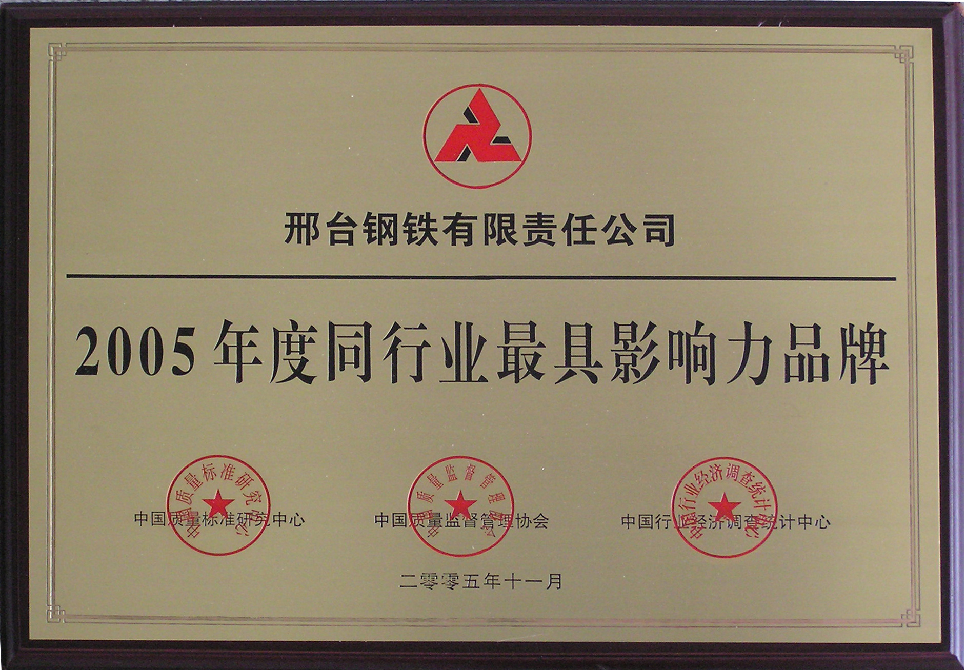 Xingtai Steel was awarded as the Most Influence Brand of the Year.