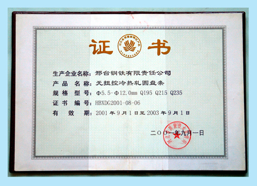 無扭控冷熱軋圓盤條獲河北省質(zhì)量信得過產(chǎn)品