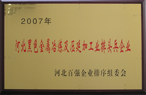 2007年12月,邢鋼獲“河北黑色金屬冶煉及壓延加工業(yè)排頭兵企業(yè)”榮譽(yù)稱號(hào)。