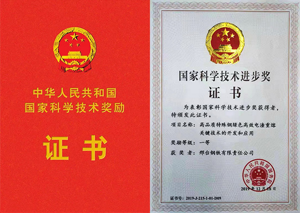 2020年1月10日,2019年度國(guó)家科學(xué)技術(shù)獎(jiǎng)勵(lì)大會(huì)在人民大會(huì)堂隆重舉行。邢鋼作為主要完成單位之一,完成的《高品質(zhì)特殊鋼綠色高效電渣重熔關(guān)鍵技術(shù)的開(kāi)發(fā)和應(yīng)用》,喜獲國(guó)家科學(xué)技術(shù)進(jìn)步一等獎(jiǎng),系全國(guó)鋼鐵行業(yè)十五年來(lái)首次獲此殊榮。