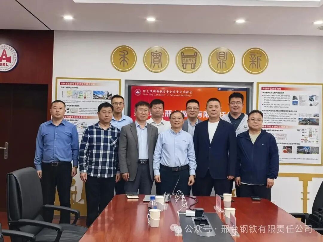 近日,邢臺鋼鐵有限責(zé)任公司(以下簡稱“邢鋼”)董事長張育明、總工程師田新中等一行5人專程拜訪了北京科技大學(xué)綠色低碳鋼鐵冶金全國重點實驗室朱榮教授團隊。雙方立足鋼鐵行業(yè)綠色轉(zhuǎn)型、減量發(fā)展的時代背景,重點圍繞綠色低碳電爐冶煉技術(shù)、鋼水潔凈化技術(shù)及智能化控制技術(shù)開展了深度溝通和交流。