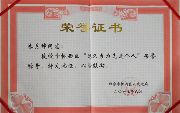 - 邢鋼質(zhì)量控制部朱月坤被授予邢臺(tái)市優(yōu)秀退役軍人榮譽(yù)稱號(hào)