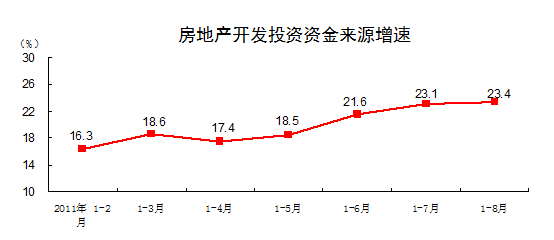 從到位資金情況看,1-8月份,到位資金212194億元,同比增長23.3%。其中,國家預(yù)算內(nèi)資金增長13.1%,國內(nèi)貸款增長9%,自籌資金增長29.4%,利用外資增長14.1%,其他資金增長17.3%。
