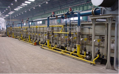 4、索氏體化淬火:采用熔融的鉛作為淬火劑,在600℃左右完成鋼絲組織由奧實(shí)體化向索氏體化的轉(zhuǎn)變。采用燃?xì)夥侄喂?,各段單?dú)控溫,根據(jù)鉛溫要求及時(shí)調(diào)整供熱負(fù)荷。