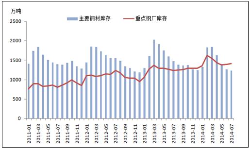 目前,中國(guó)鋼材市場(chǎng)正處于去庫(kù)存時(shí)期,主要鋼材的庫(kù)存量正在快速減少。據(jù)我的鋼鐵數(shù)據(jù)庫(kù)顯示截止2014年8月8日,中國(guó)主要鋼材庫(kù)存量為1190.35萬(wàn)噸,與去年相比下降202萬(wàn)噸,同比降幅為14.5%。3月至7月的平均降速達(dá)到9.62%,已大幅度超過(guò)以往的去庫(kù)存速度。庫(kù)存量的快速下降,一般意味著下游行業(yè)對(duì)鋼材需求的增加,鋼材市場(chǎng)的情況理應(yīng)十分良好,但實(shí)際上鋼材的價(jià)格卻是不增反降。據(jù)悉,中國(guó)7月的Myspic普鋼絕對(duì)價(jià)格指數(shù)為3393.54元/噸,同比下降8.56%。