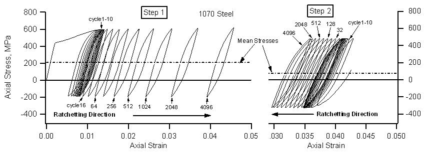 材料受到拉伸或壓縮時(shí),如果力大于材料的屈服強(qiáng)度,那么材料就會(huì)發(fā)生塑性變形。外力卸載并反向加載,材料先是沿彈性線(xiàn)恢復(fù)繼而發(fā)生反向變形,如果反向加載的載荷小于初始加載的載荷,那么材料反向變形大小就會(huì)小于初始變形,進(jìn)而產(chǎn)生了殘余應(yīng)變。如此反復(fù),這就是材料中的棘輪效應(yīng)。簡(jiǎn)單點(diǎn)說(shuō),就是材料在非對(duì)稱(chēng)應(yīng)力循環(huán)載荷下將會(huì)產(chǎn)生塑性變形循環(huán)累積現(xiàn)象,稱(chēng)之為棘輪效應(yīng)。