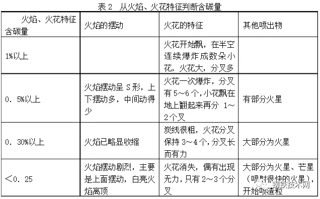 對于火花的研究,1804年起英國的門生?塔斯克斯(Manson Tacpues)、1929年給特(T.D.Gat)及日本“火花檢查法研究委員會”都曾從鋼品種檢查的角度系統(tǒng)研究了如何根據(jù)砂輪上磨出來的火花特征去鑒定鋼的品種。對于在煉鋼過程中如何用視覺掌握火花的方法的研究是極其貧乏的??椿鸹〞r感知的對象是運(yùn)動物體,即火花。要看它分叉的數(shù)量,分叉是一種形狀變化?;鸹ǚ植嬷噪y以看到的原因是由其本身及四周的一些因素決定的,如爐口噴出來的碳花體積很小,很密,流動速度很快,同時白色碳花又在白亮火焰的背景上,因此很難識別碳花,而碳花分叉更難辨別,因?yàn)樘蓟◤臓t口噴出后只在半空中開始分叉,而且分叉的時間極短促,所以要想觀察到碳花的分叉,就需要用視覺追蹤,把碳花作為一個運(yùn)動物體的運(yùn)動軌跡。此外要掌握碳花運(yùn)動速度,因?yàn)樘蓟ㄔ诜植嬉郧耙档退俣龋诎肟胀A粢幌码S后分叉,所以還要掌握碳花在空中分叉的位置。碳花在半空停留時就注意觀察才能看到碳花分叉的數(shù)目。掌握碳花運(yùn)動的規(guī)律,由時間空間定位來觀察碳花分叉情況,在實(shí)踐中證明了是個好方法。在剛開始學(xué)習(xí)看碳花時,由于碳花很密,可以先從碳花最稀的地方選擇地找一個來觀察,這樣容易觀察到它的特征,這就是選擇性的部分觀察,學(xué)會部分觀察后才可進(jìn)行全部觀察。有的煉鋼工沒有掌握這一認(rèn)識活動的規(guī)律,就始終不能看到碳花的分叉,目前在煉鋼工中不能判斷碳花的不乏其人。