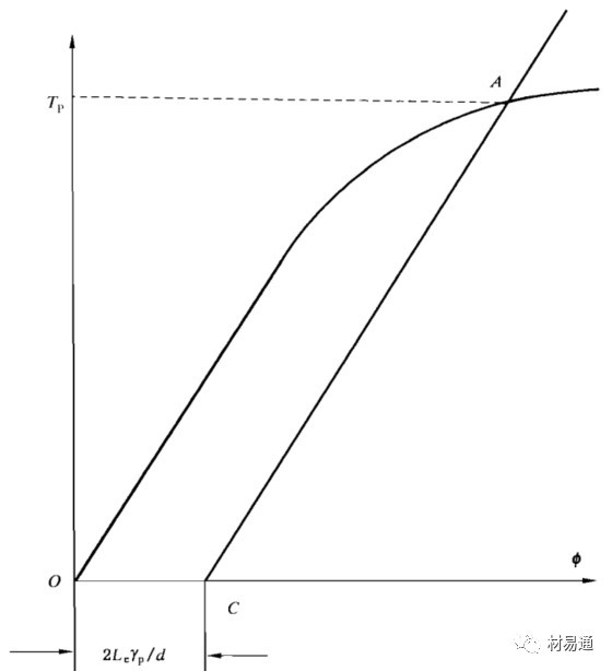 用自動記錄方法記錄扭矩—扭角曲線。在曲線上延長彈性直線段交扭角軸于O點,截取OC段,過C點作彈性直線段的平行線CA交曲線于A點,A點對應的扭矩為Tp。