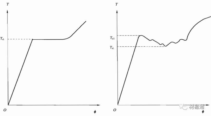 首次下降前的最大扭矩為上屈服扭矩,屈服階段中不計初始瞬間效應的最小扭矩為下屈服扭矩。