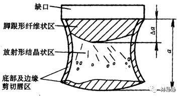 裂紋快速擴展形成結(jié)晶區(qū),到了壓縮區(qū)后,應(yīng)力狀態(tài)發(fā)生變化,裂紋擴展速度再次減小,形成纖維區(qū)。