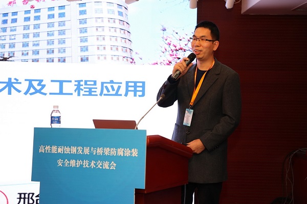 在技術(shù)交流環(huán)節(jié),本次會議共安排了15場次的專家報告。包括中國鋼研科技集團(tuán)有限公司、邢臺鋼鐵有限責(zé)任公司、首鋼集團(tuán)有限公司、馬鞍山鋼鐵股份有限公司、中交一公路勘察設(shè)計(jì)研究院有限公司、蘇交科集團(tuán)股份有限公司、上海市城市建設(shè)設(shè)計(jì)研究院總院、武漢重型工程股份有限公司、山東電工電氣有限公司、中鐵寶橋集團(tuán)有限公司、中鐵山橋集團(tuán)有限公司、固瑞克流體設(shè)備(上海)有限公司、武漢雙虎涂料有限公司、河南青山環(huán)??萍加邢薰?、廣州集泰化工股份有限公司等技術(shù)專家在會上做了精彩的技術(shù)分享。報告內(nèi)容題材涉及廣泛、內(nèi)容充實(shí),既有正向設(shè)計(jì)、行業(yè)應(yīng)用、案例分析,又有新技術(shù)、行業(yè)標(biāo)準(zhǔn)、相關(guān)政策深度解讀。學(xué)術(shù)分享、學(xué)習(xí)交流氛圍濃厚,與會代表反響熱烈。其中,邢鋼首席技術(shù)專家 技術(shù)中心線材應(yīng)用研究所所長阮士朋作了《高強(qiáng)韌耐候螺栓用鋼關(guān)鍵技術(shù)及工程應(yīng)用》精彩主題演講,引起了與會專家、學(xué)者的普遍關(guān)注。