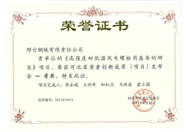 近日,由河北省質(zhì)量文化協(xié)會主辦的“河北省第四屆質(zhì)量創(chuàng)新成果(項目)發(fā)布會”在秦皇島召開,邢鋼精益六西格瑪代表團3個成果入圍發(fā)布會名單,其中《高強度耐低溫風(fēng)電螺栓用盤條的研發(fā)》和《提高不銹鋼1Cr13澆次連澆爐數(shù)》榮獲一等獎,《提高Q55SiCrA-1線材成材率》榮獲二等獎。