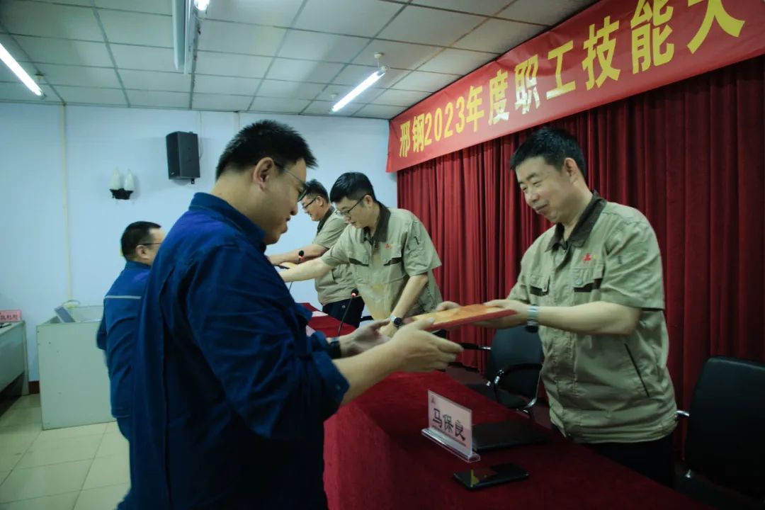 近日,邢臺(tái)鋼鐵有限責(zé)任公司在線材廠召開“2023年度職工技能比武大賽表彰會(huì)”,對取得優(yōu)異成績、表現(xiàn)突出的先進(jìn)個(gè)人和集體進(jìn)行表彰。公司總經(jīng)理彭世丹、副總經(jīng)理馬保良、韓清連為獲獎(jiǎng)選手頒發(fā)榮譽(yù)證書并致賀。