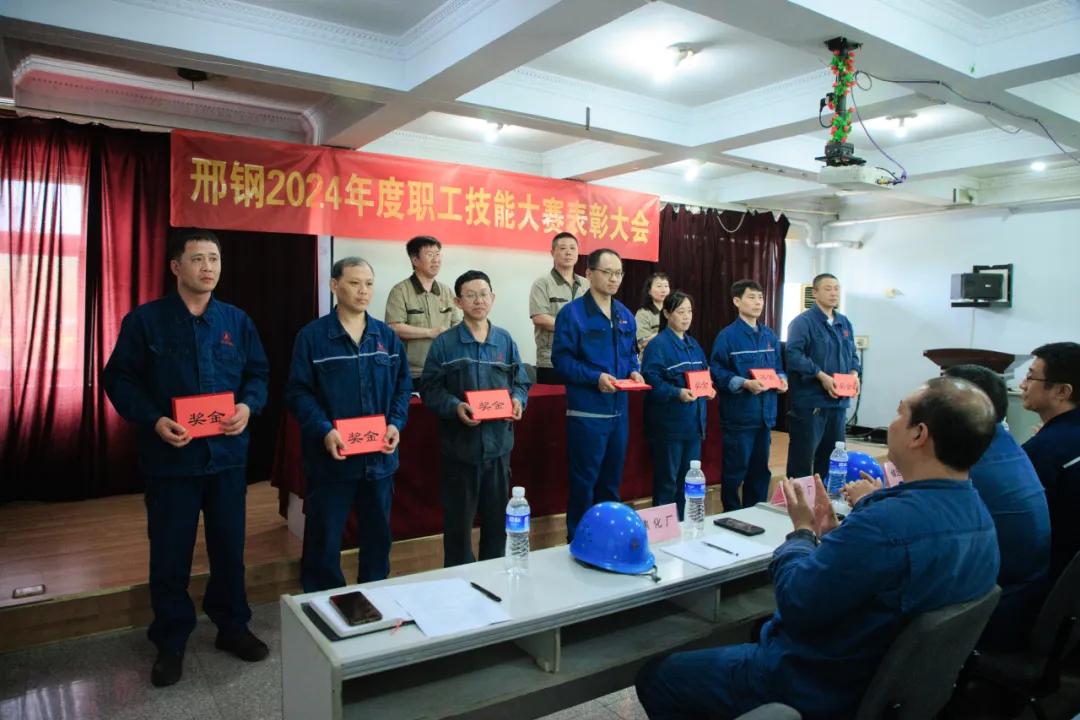 2024年7月16日,公司工會(huì)、人力資源部聯(lián)合舉辦的邢鋼2024年度職工技能大賽頒獎(jiǎng)儀式在煉鋼廠舉行。公司黨委書記、董事長(zhǎng)張育明,公司總工程師兼董事長(zhǎng)、總經(jīng)理助理田新中,公司董事長(zhǎng)助理兼人力資源總監(jiān)徐會(huì)云為獲獎(jiǎng)單位和個(gè)人頒獎(jiǎng)。