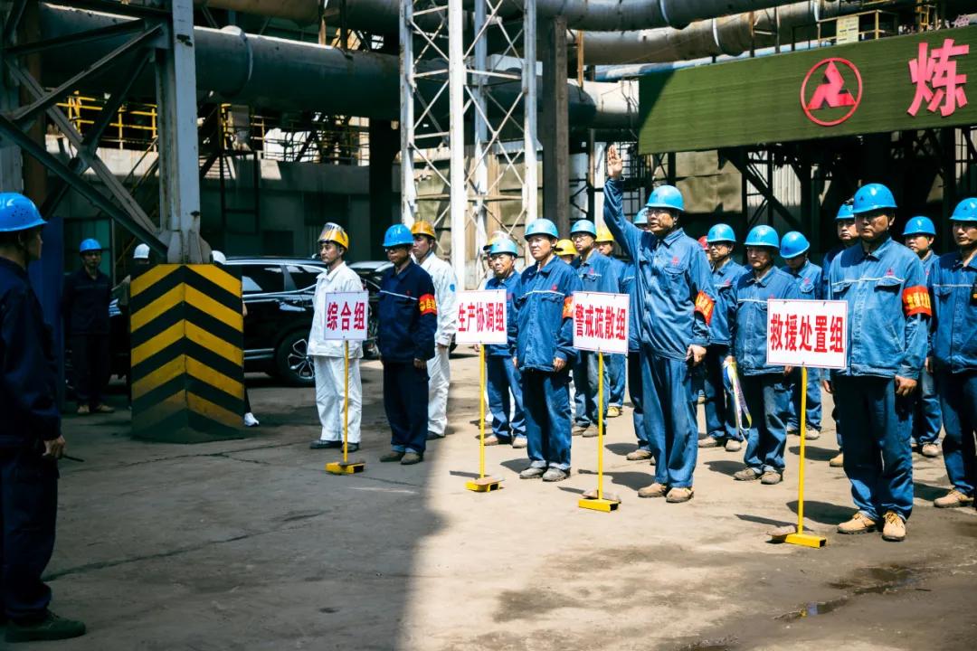 隨后,參會人員一起現場觀摩了邢鋼高溫熔融金屬爆噴事故現場應急處置演練。本次演練,模擬煉鋼廠加料跨天車向2#轉爐加廢鋼時發(fā)生爆噴為背景,演示了事故上報、安全疏散、預案啟動、現場搶險、應急救援等環(huán)節(jié)。
