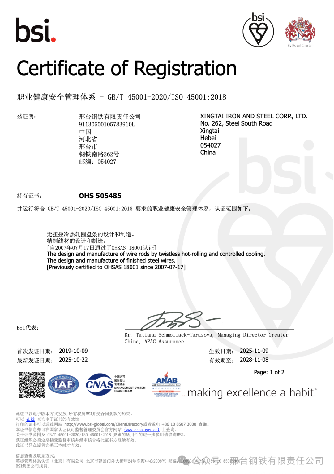 邢鋼通過BSI再認(rèn)證,一體化管理體系已有效運行十八年